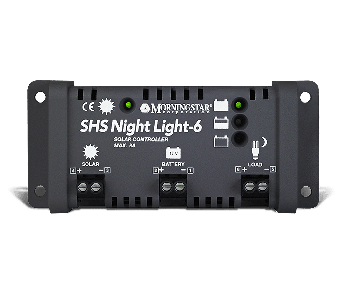 Morningstar’s well-known high quality and reliability is now available in a low cost solar controller. The SHS™ Controller is ideal for rural electrification systems with one to three solar panels. This controller was designed for markets outside the USA and Canada, and meets World Bank specifications and provides many features and benefits. The SHS Night Light version has automatic lighting control.